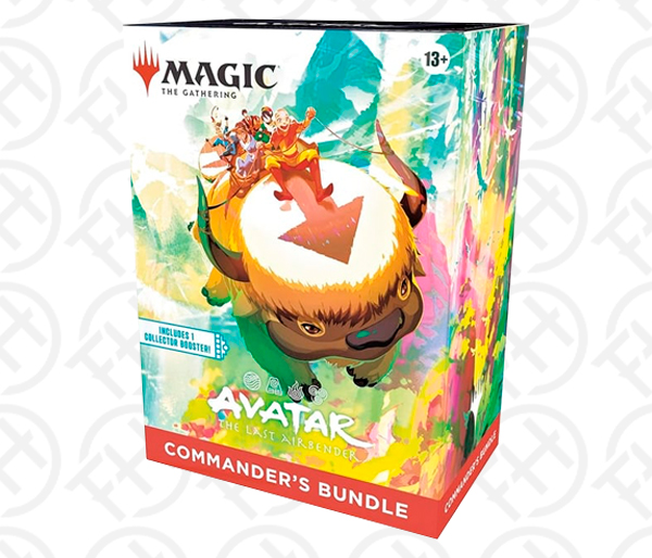 This masterful bundle unites all the greatest elements for Avatar: The Last Airbender fans, boasting 9 Play Boosters, gorgeous Full-Art basic lands, and a Collector Booster packed with Rares and/or Mythics, foils, and other stylish surprises. But that’s not all—Commander players will find Avatar-themed staples Sol Ring, Arcane Signet, and Swiftfoot Boots, plus two classic spells that are perfect for any commander’s arsenal. You’ll also get a Commander’s Bundle-exclusive Click Wheel life counter and special Magic: The Gathering | Avatar: The Last Airbender card box.