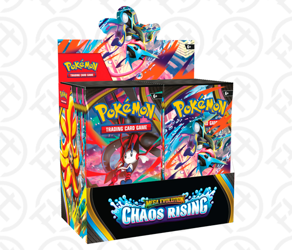 The hustle and bustle of the city turns into havoc as Mega Floette ex brings turmoil to the streets! Filled with courage and determination, Mega Greninja ex gathers other powerful Mega Evolution Pokémon ex, including Mega Pyroar ex and Mega Dragalge ex, to ward off this growing threat. As night falls, danger blossoms in the Pokémon TCG: Mega Evolution—Chaos Rising expansion!