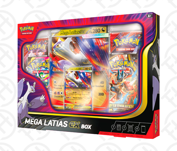 Mega Evolution takes the power of the Legendary Pokémon Latias past its limit! With awesome speed, it surges through the sky with draconic might. Now you can team up with Mega Latias ex as a playable foil promo card, plus an oversize lenticular card with amazing artwork. You also get four booster packs with even more Pokémon inside!