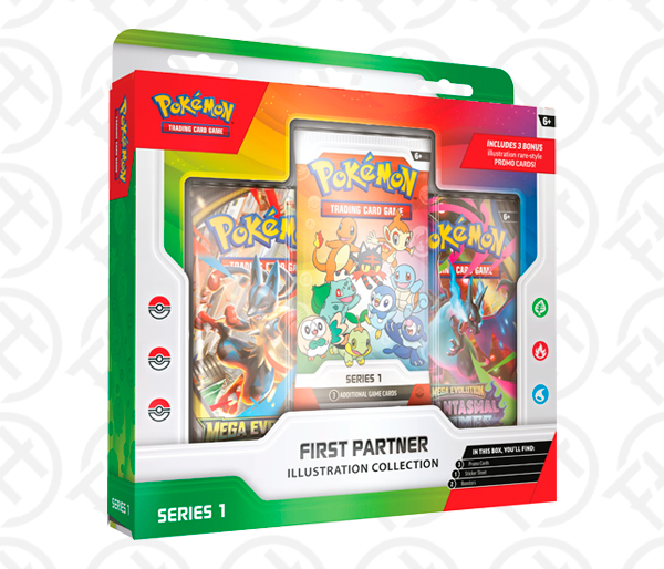 The Pokémon TCG: First Partner Illustration Collection—Series 1 includes: