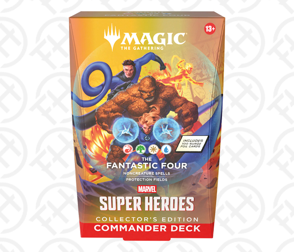 Commander decks are ready to play right out of the box and contain everything you need to play Magic’s most popular multiplayer format. Magic: The Gathering | Marvel Super Heroes Commander Decks Collector’s Edition feature four different Commander deck versions and each includes 100 surge foil cards.