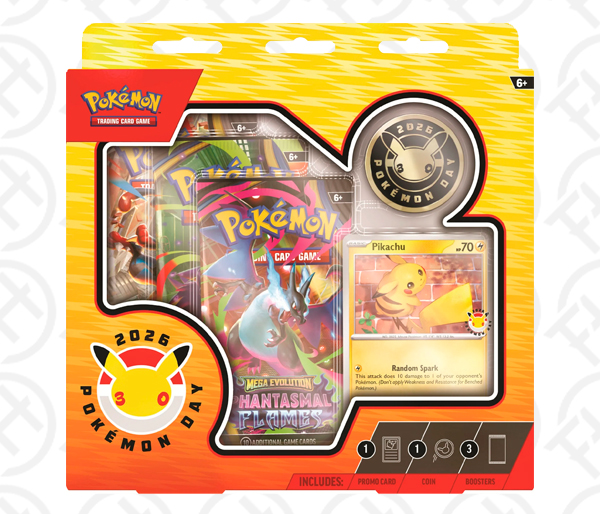 Every year on February 27, Pokémon fans around the world celebrate Pokémon Day to commemorate the release of the very first Pokémon video games in Japan. Pokémon Day 2026 is an extra-special occasion-it’s Pokémon’s 30th anniversary, and you’re invited to the party! Celebrate with a specially stamped foil promo card featuring Pikachu and a metallic coin featuring the 30th anniversary logo, plus three booster packs from different Pokémon TCG expansions.