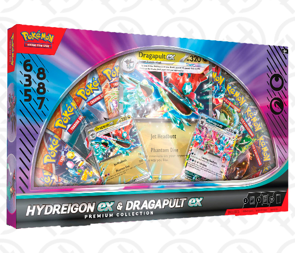 The Pokémon TCG: Hydreigon ex & Dragapult ex Premium Collection includes: