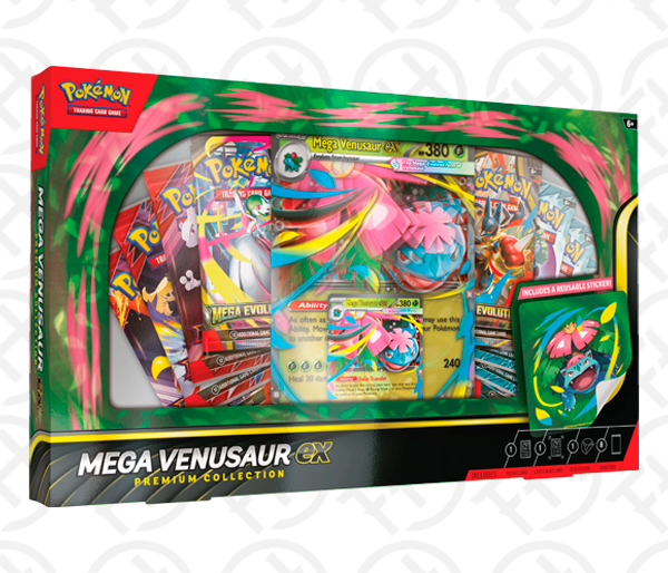 The Pokémon TCG: Mega Venusaur ex Premium Collection includes: