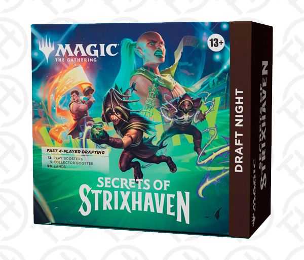 t’s a draft party in a box! Draft Night has everything you need to host a Pick-Two Draft with just four players. Pick-Two encourages fast, dynamic drafting that’s great for kitchen-table play or adding a dash of variety to game night. Bring Secrets of Strixhaven to the table for an unforgettable game night!