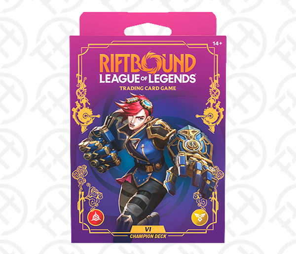 Let’s get to the fun part! Vi has one goal in her Champion Deck: Punch. Really. Hard. This preconstructed 56-card deck shines by buffing units and slamming them around the battlefields, exactly how Vi likes to do business. Whether you’re a new player ready to jump in or a proficient player looking for a fresh deck, Vi is ready to overcome any odds straight out of the box. Includes 1 Riftbound: Unleashed booster!